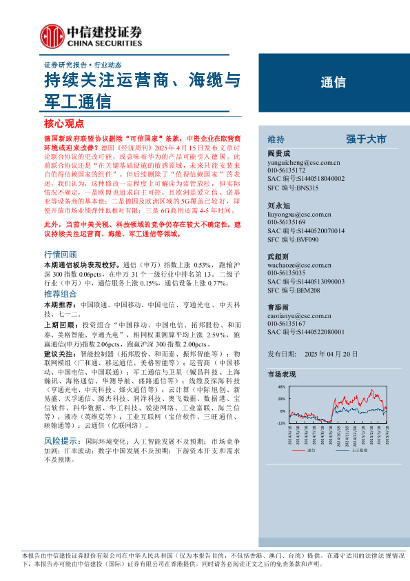 【中信建投证券】【20250420】通信行业动态:持续关注运营商、海缆与军工通信-10页