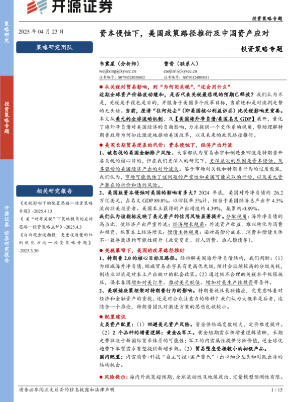 【开源证券】【20250423】资本侵蚀下,美国政策路径推衍及中国资产应对-15页