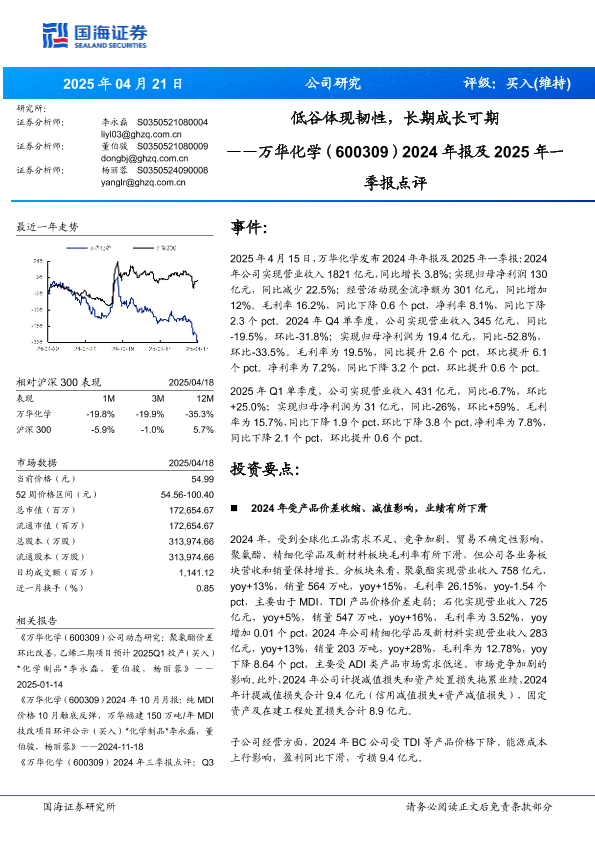 【国海证券】【20250421】万华化学2024年报及2025年一季报点评-10页