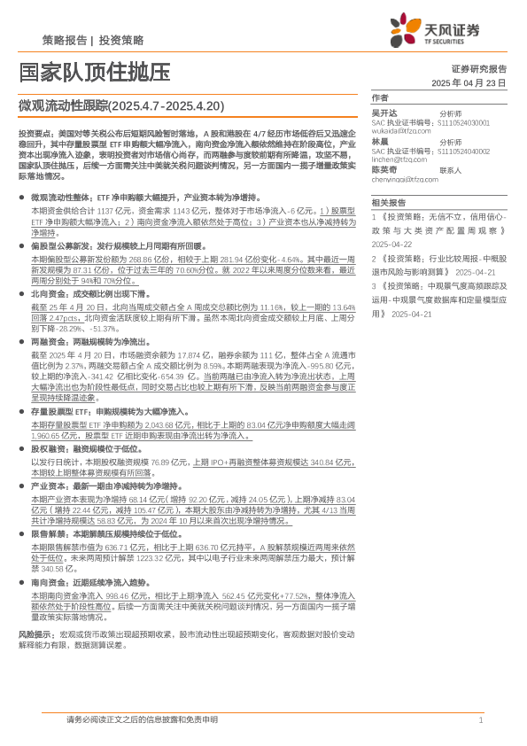 【天风证券】【20250423】微观流动性跟踪:国家队顶住抛压-13页