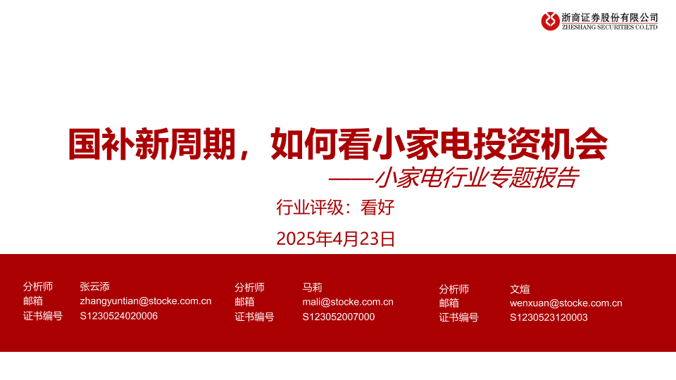 【浙商证券】【20250423】小家电行业专题报告:国补新周期,如何看小家电投资机会-12页