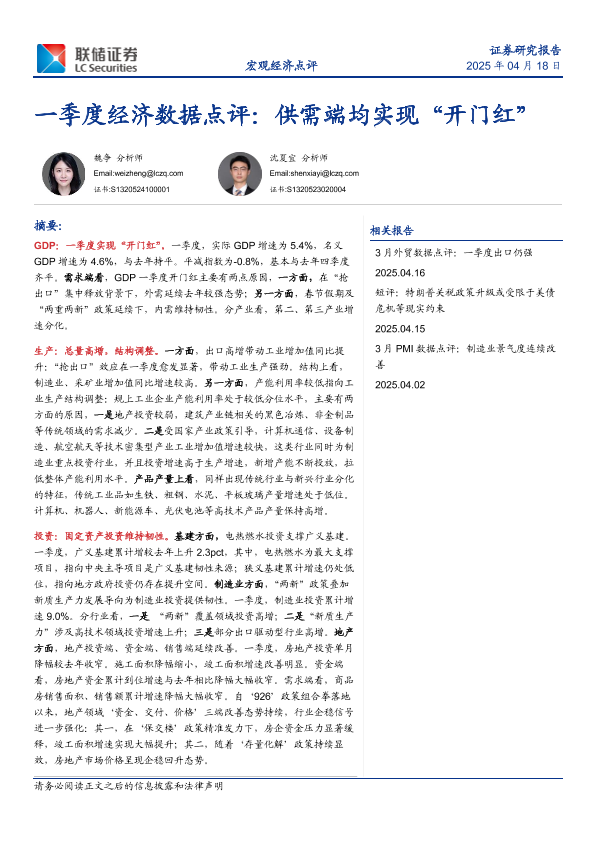 【联储证券】【20250418】一季度经济数据点评:供需端均实现“开门红”-11页