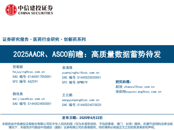 【中信建投证券】【20250422】医药行业创新药系列2025AACR、ASCO前瞻:高质量数据蓄势待发-100页
