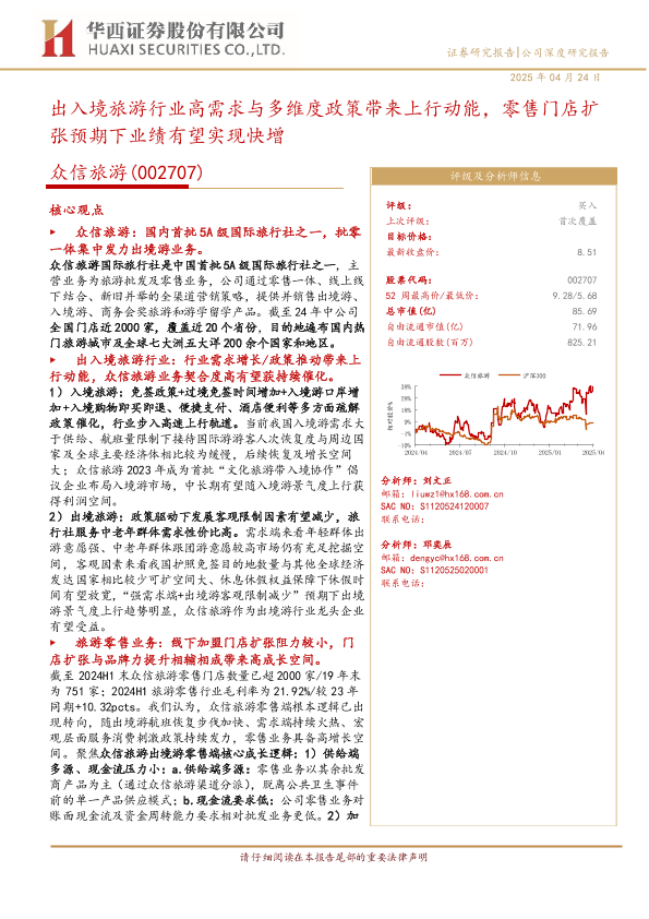 【华西证券】【20250424】众信旅游(002707)出入境旅游行业高需求与多维度政策带来上行动能,零售门店扩张预期下业绩有望实现快增-30页