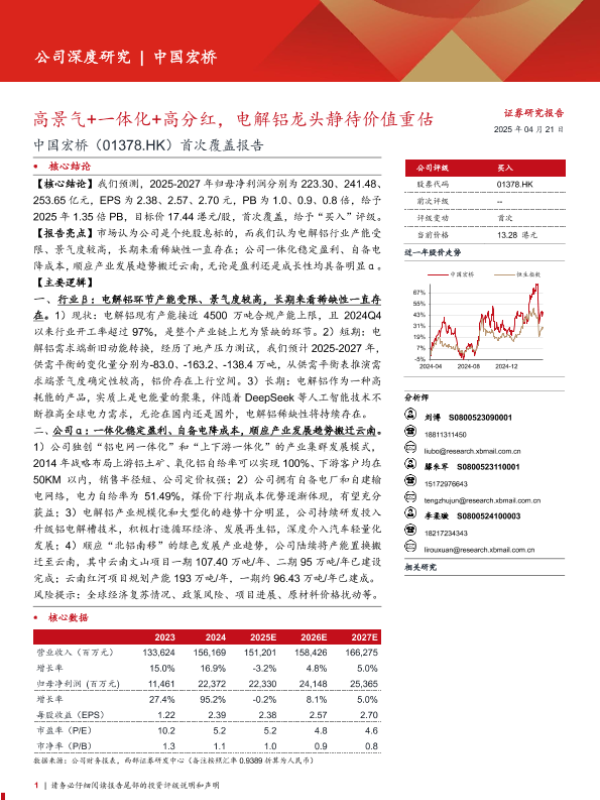 【西部证券】【20250421】中国宏桥首次覆盖报告:高景气+一体化+高分红,电解铝龙头静待价值重估-27页