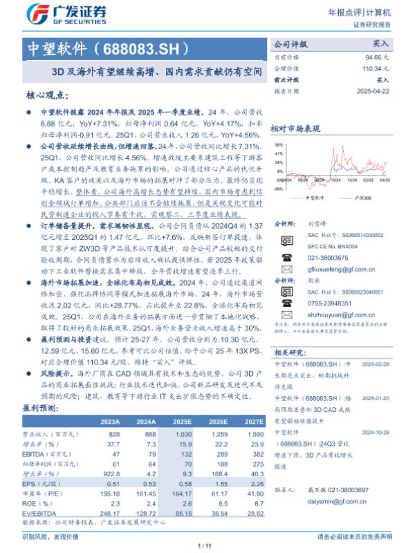 【广发证券】【20250422】中望软件(688083.SH)3D及海外有望继续高增、国内需求贡献仍有空间-11页