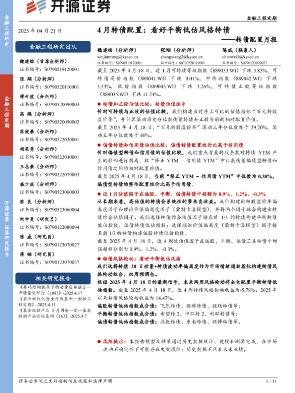【开源证券】【20250421】4月转债配置:看好平衡低估风格转债-11页