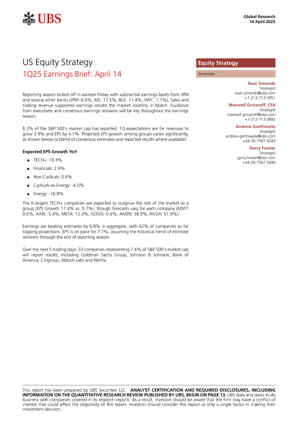 【UBS Securities LLC】【20250414】US Equity Strategy 1Q25 Earnings Brief-17页