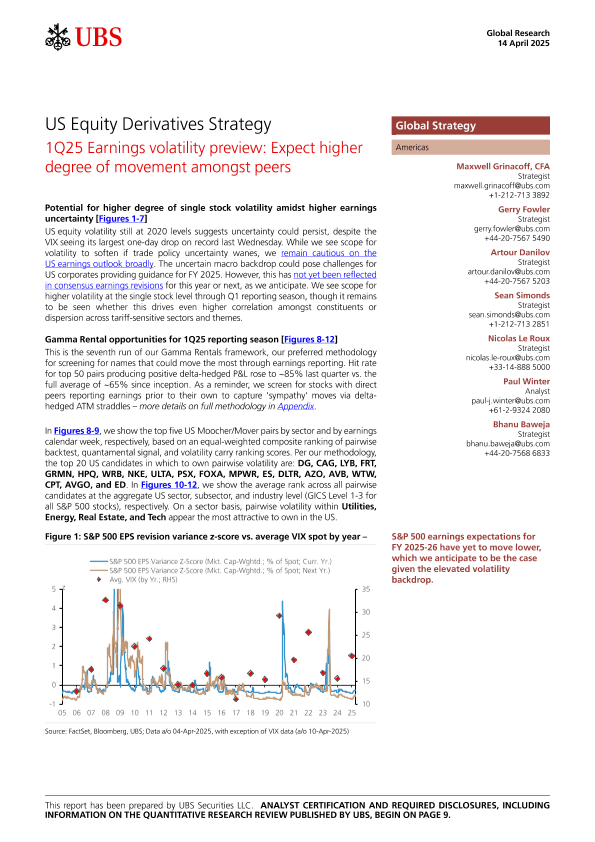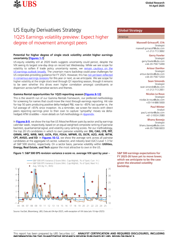 【UBS Securities LLC】【20250414】US Equity Derivatives Strategy _1Q25 Earnings volatility preview-13页