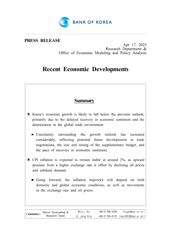 【韩国央行】【202504】Recent Economic Developments-7页