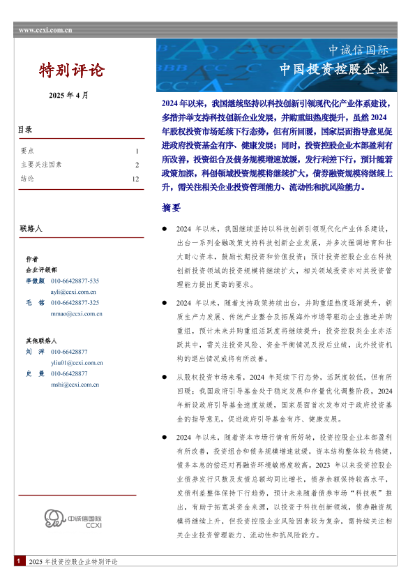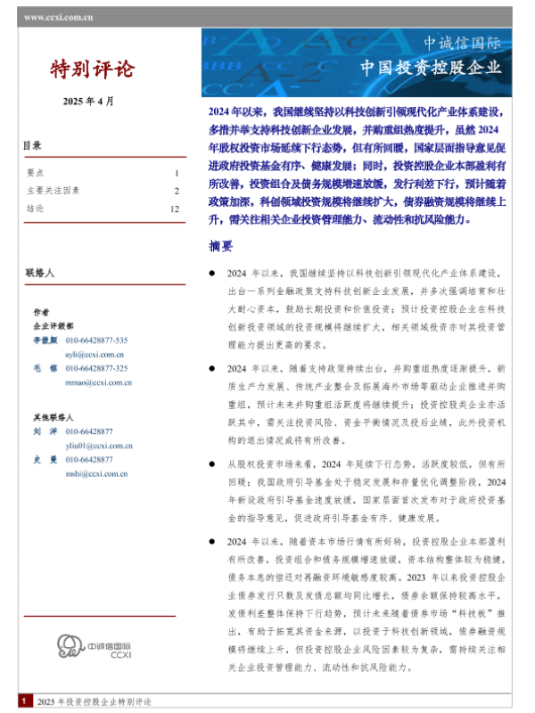 【中诚信国际】【202504】中国投资控股企业特别评论-13页