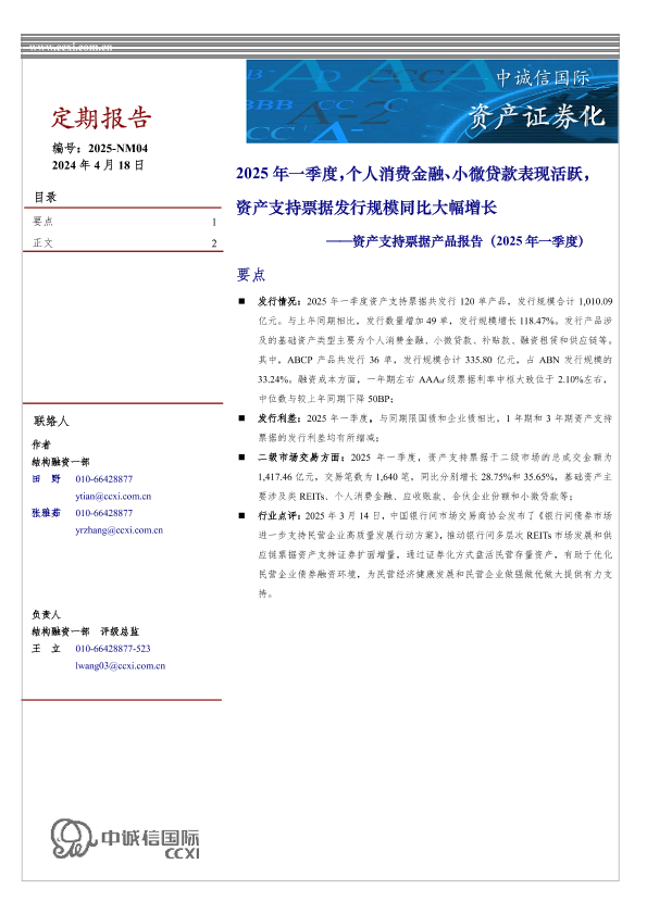 【中诚信国际】【20240418】资产支持票据产品报告(2025年一季度)-14页
