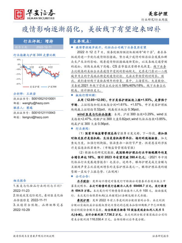 【华安证券】【20221211】美容护理行业周报:疫情影响逐渐弱化,美妆线下有望迎来回补-17页