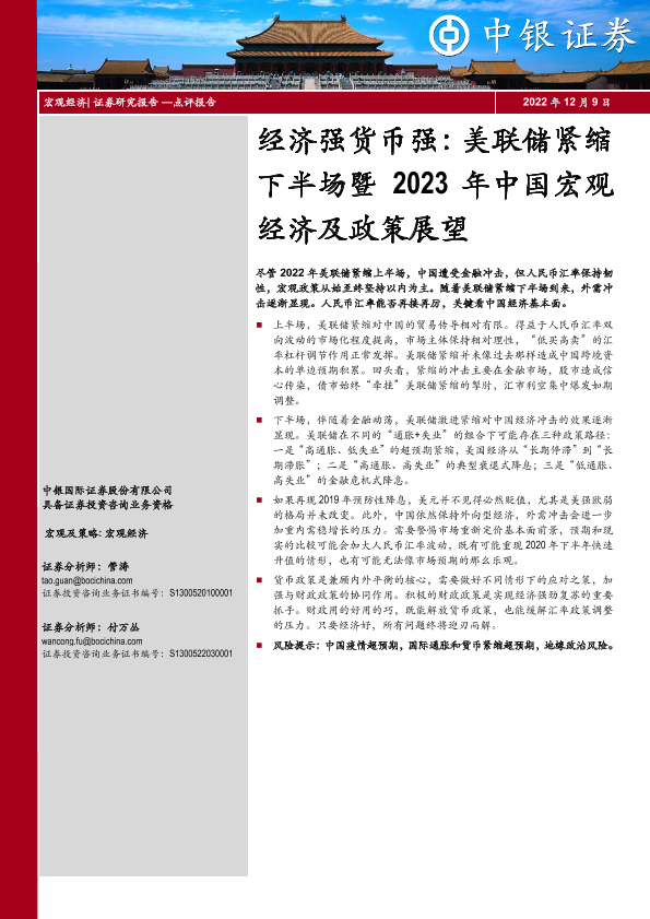【中银证券】【20221209】经济强货币强:美联储紧缩下半场暨2023年中国宏观经济及政策展望-25页