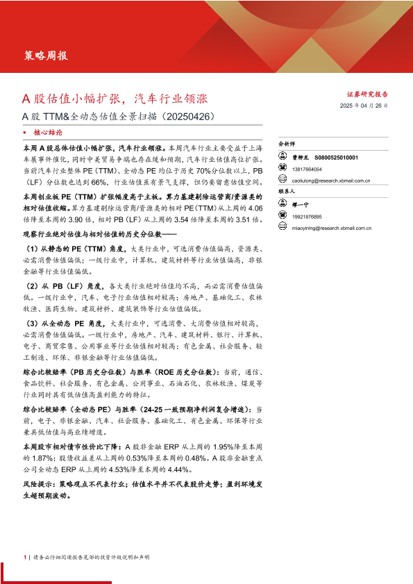【西部证券】【20250426】A股TTM&全动态估值全景扫描-15页