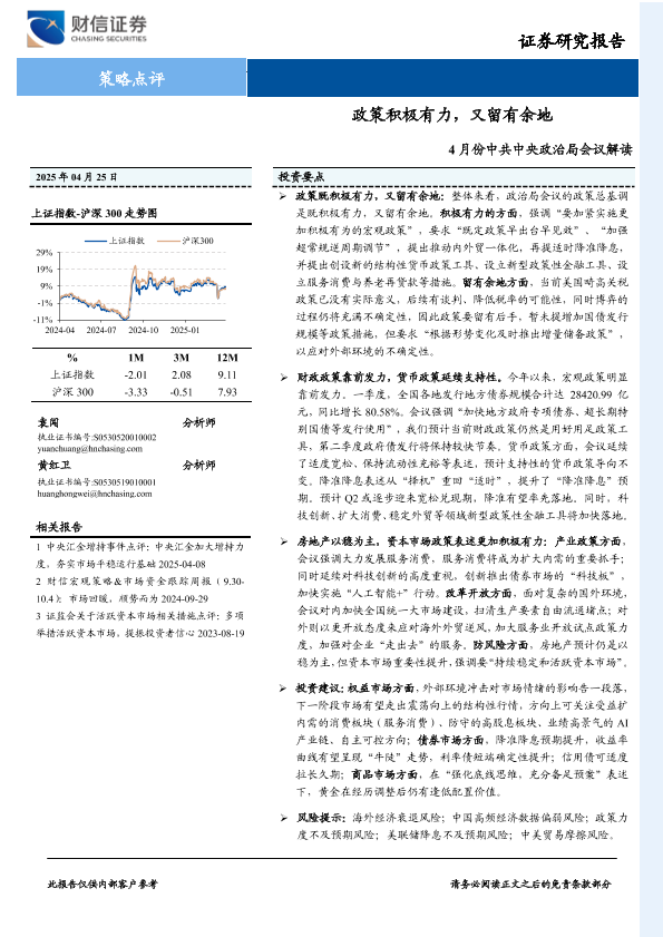 【财信证券】【20250425】4月份中共中央政治局会议解读:政策积极有力,又留有余地-12页