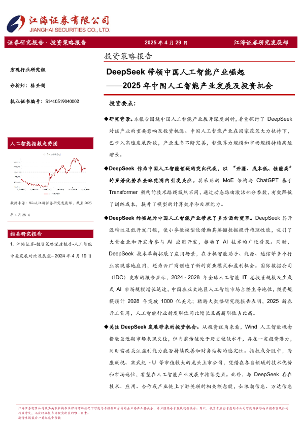 【江海证券】【20250429】2025年中国人工智能产业发展及投资机会:DeepSeek带领中国人工智能产业崛起-23页