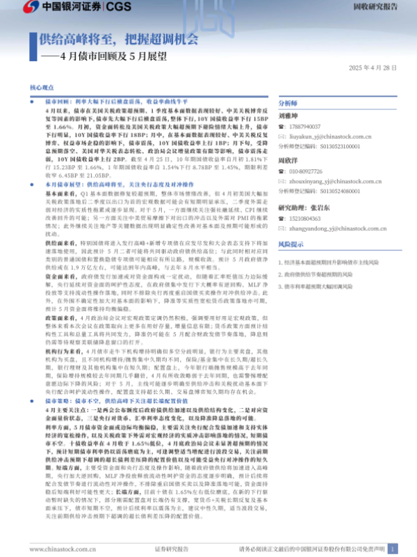 【银河证券】【20250428】4月债市回顾及5月展望:供给高峰将至,把握超调机会-20页
