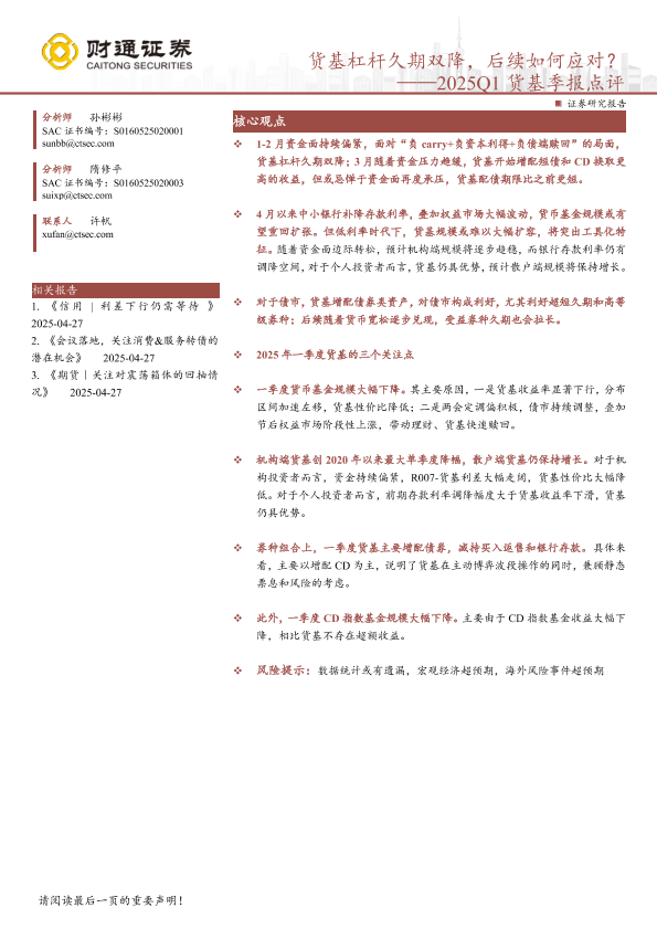 【财通证券】【20250428】2025Q1货基季报点评:货基杠杆久期双降,后续如何应对?-12页