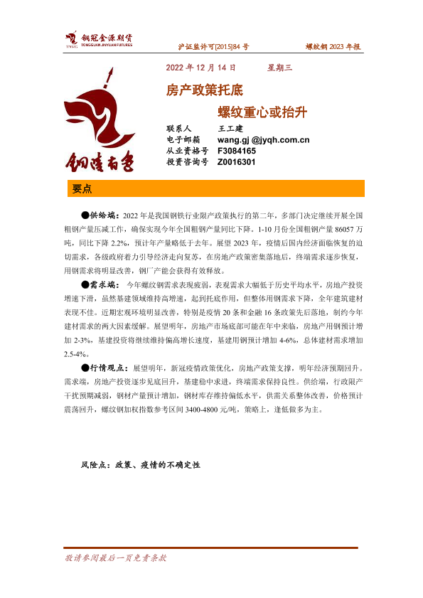 【铜冠金源期货】【20221214】螺纹钢2023年报:房产政策托底,螺纹重心或抬升-15页