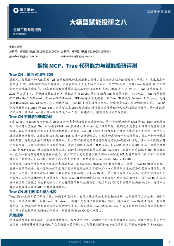 【国金证券】【20250425】大模型赋能投研之八:拥抱MCP,Trae代码能力与赋能投研评测-16页