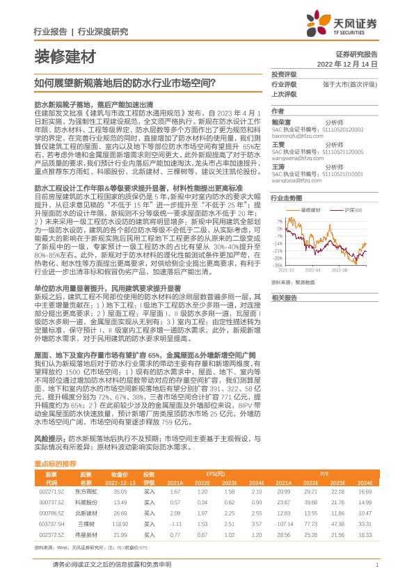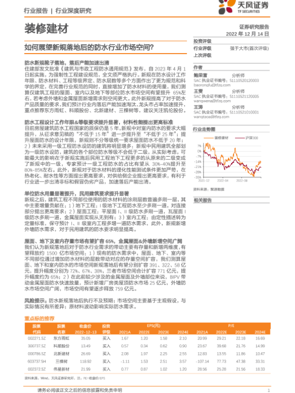【天风证券】【20221214】装修建材行业深度研究:如何展望新规落地后的防水行业市场空间?-22页