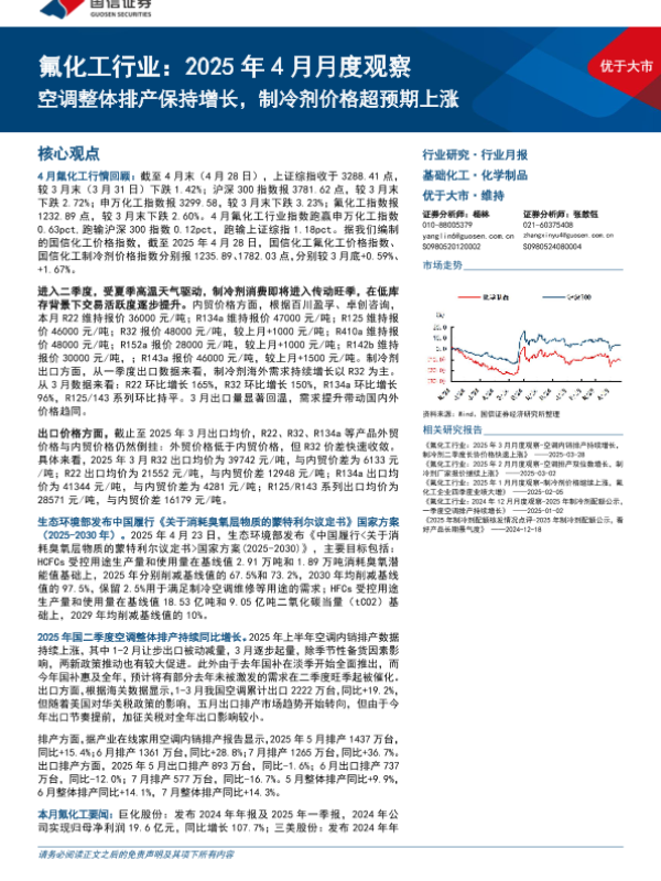 【国信证券】【20250429】氟化工行业:2025年4月月度观察-25页
