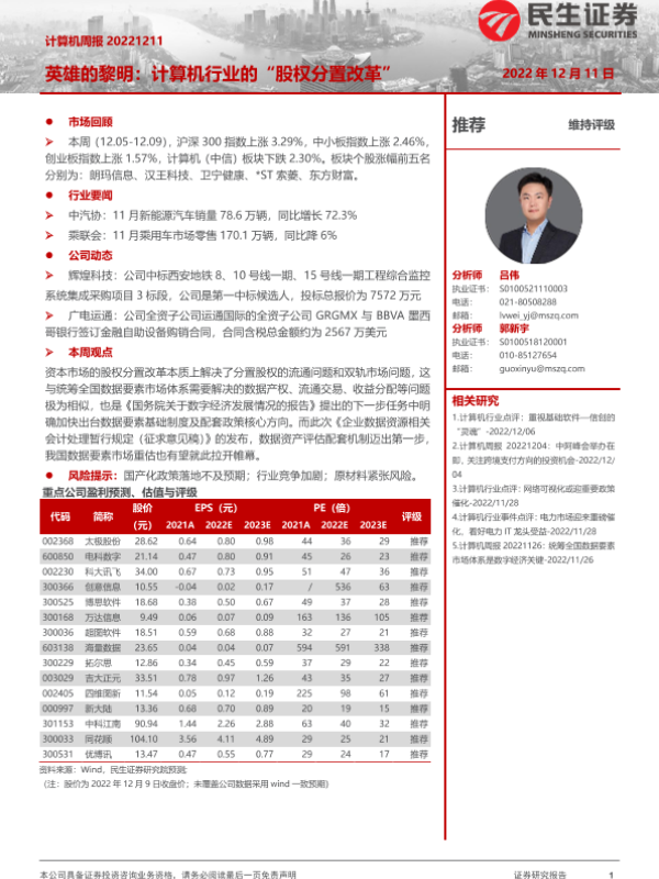 【民生证券】【20221211】计算机周报:英雄的黎明:计算机行业的“股权分置改革”-25页