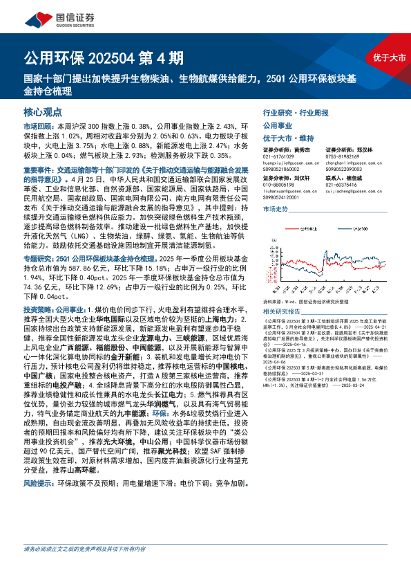 公用环保 基金持仓 生物航煤 绿色燃料 生物柴油
