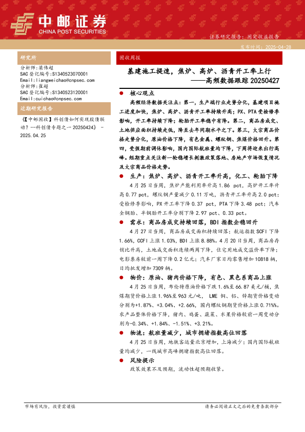 【中邮证券】【20250428】高频数据跟踪:基建施工提速,焦炉、高炉、沥青开工率上行-13页