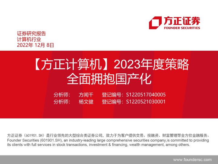 【方正证券】【20221208】计算机行业2023年度策略:全面拥抱国产化-63页
