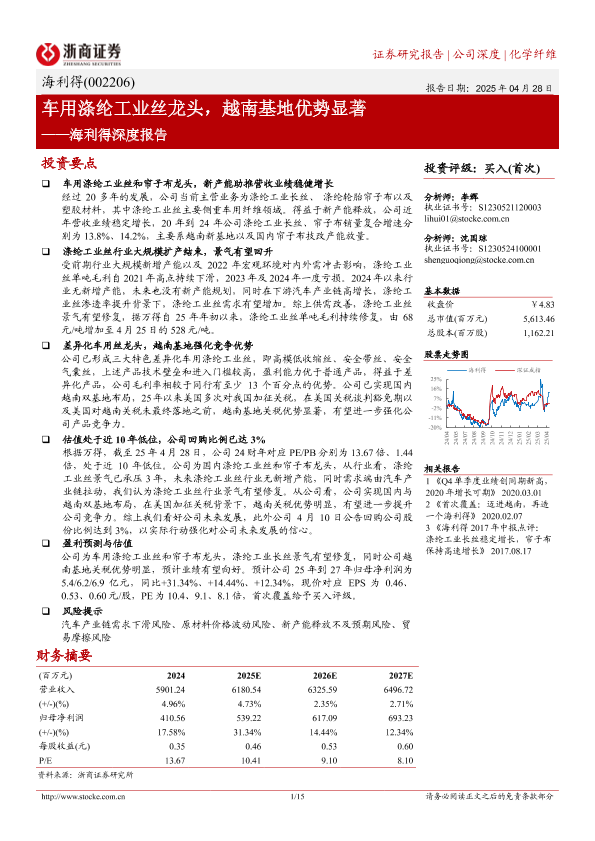 【浙商证券】【20250428】海利得(002206)深度报告:车用涤纶工业丝龙头,越南基地优势显著-15页
