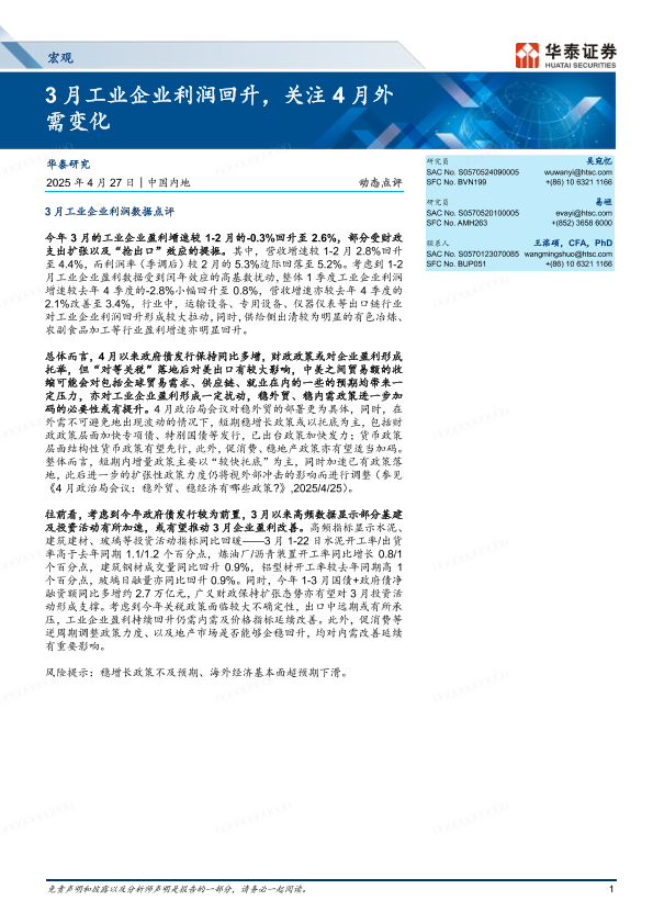 【华泰证券】【20250427】宏观动态点评:3月工业企业利润回升,关注4月外需变化-11页
