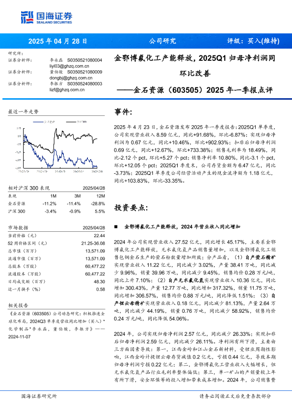 【国海证券】【20250428】金石资源2025年一季报点评-10页
