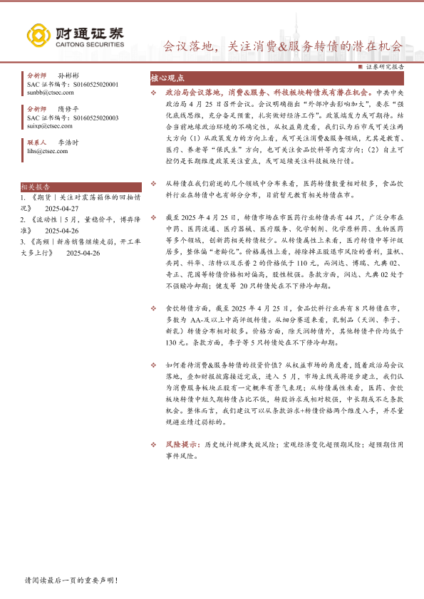 【财通证券】【20250427】会议落地,关注消费&服务转债的潜在机会-14页