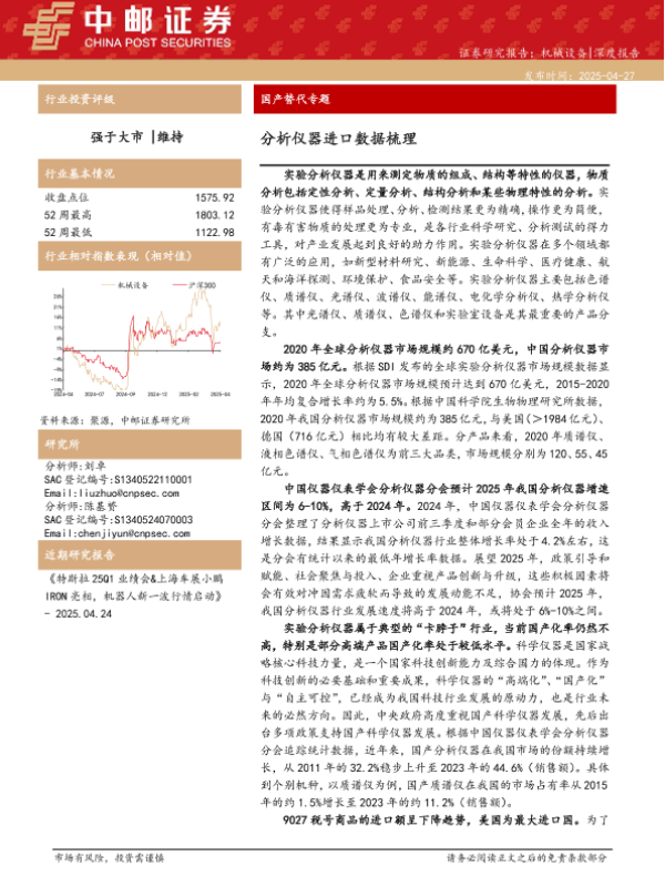 【中邮证券】【20250427】机械设备行业深度报告-国产替代专题:分析仪器进口数据梳理-18页