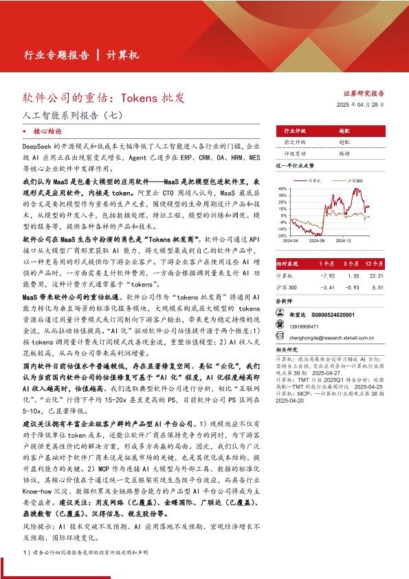 【西部证券】【20250428】计算机行业人工智能系列报告(七):软件公司的重估,Tokens批发-27页