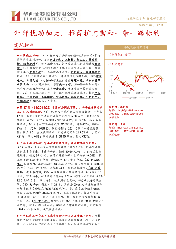 【华西证券】【20240427】建筑材料行业:外部扰动加大,推荐扩内需和一带一路标的-23页