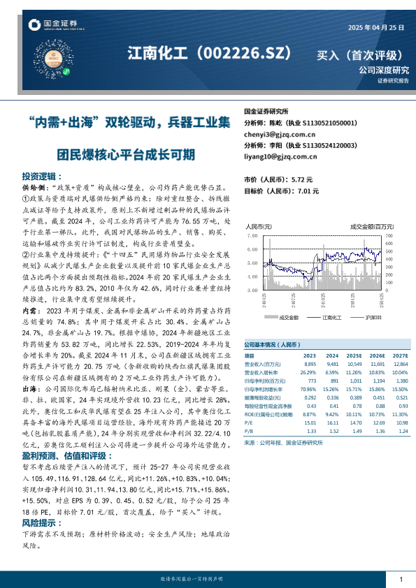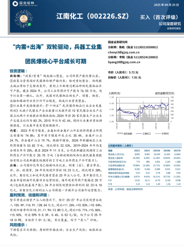 【国金证券】【20250425】江南化工“内需+出海”双轮驱动,兵器工业集团民爆核心平台成长可期-22页