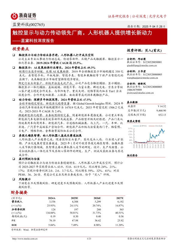 【浙商证券】【20250428】蓝黛科技(002765)深度报告:触控显示与动力传动领先厂商,人形机器人提供增长新动力-23页