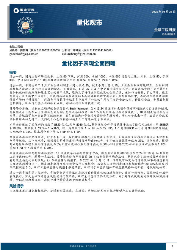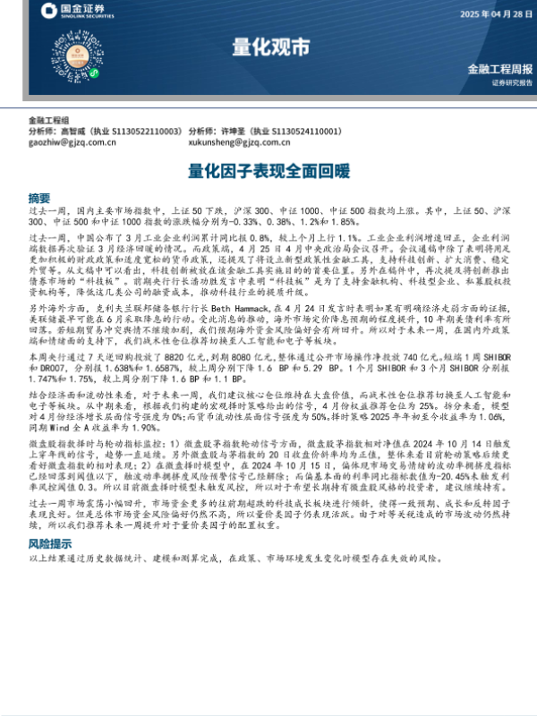 【国金证券】【20250428】量化观市:量化因子表现全面回暖-12页