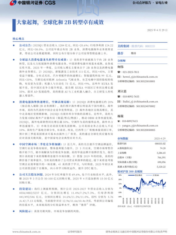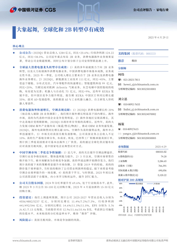【银河证券】【20250429】美的集团大象起舞,全球化和2B转型卓有成效-19页