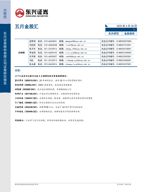 【东兴证券】【20250428】五月金股汇-14页