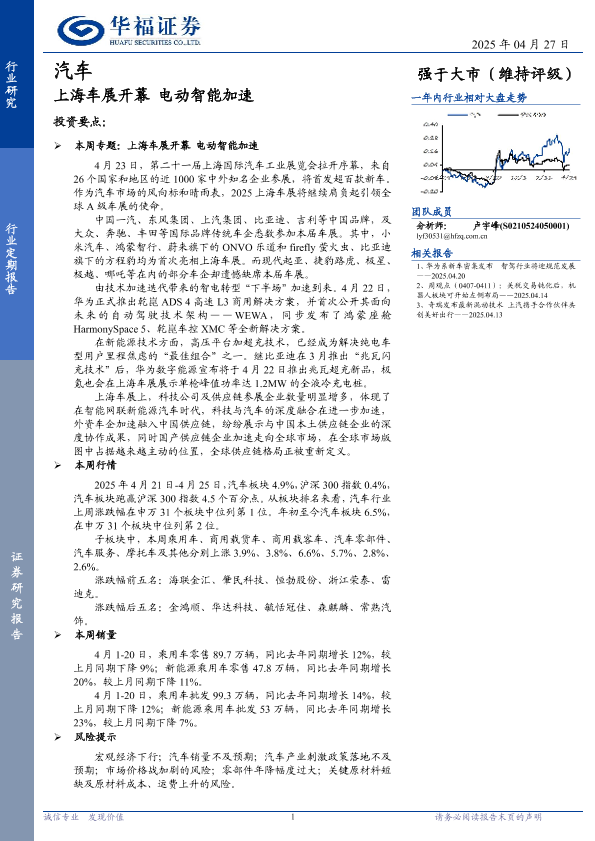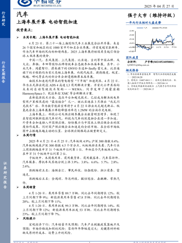 【华福证券】【20250427】汽车行业定期报告:上海车展开幕,电动智能加速-12页