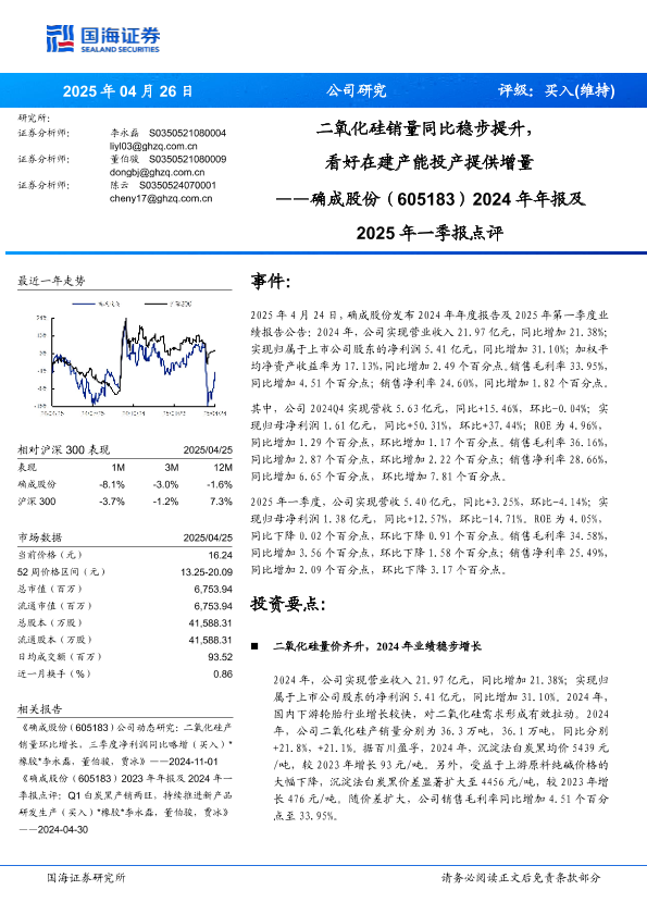 【国海证券】【20250426】确成股份2024年年报及2025年一季报点评-10页