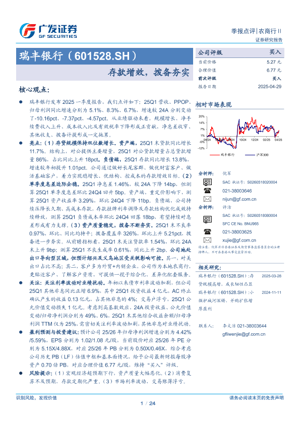 【广发证券】【20250429】瑞丰银行(601528)存款增效,拨备夯实-24页