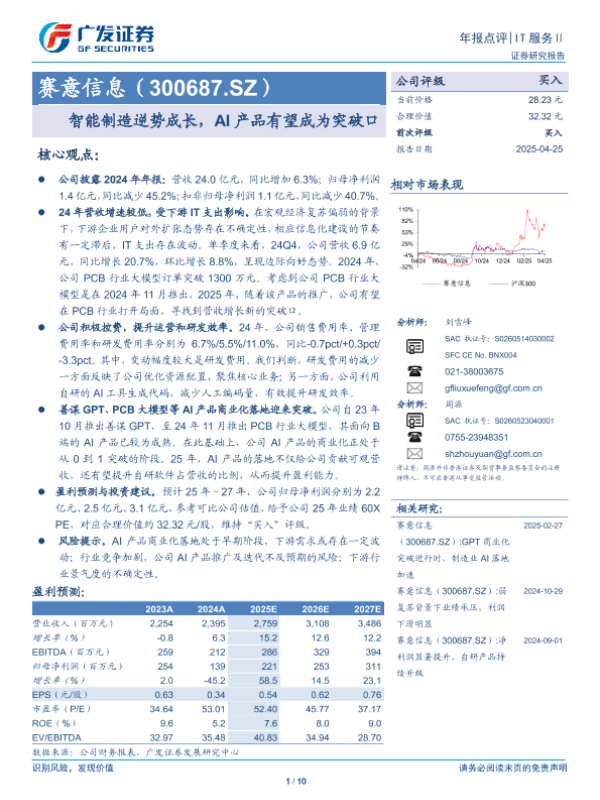 【广发证券】【20250425】赛意信息(300687)智能制造逆势成长,AI产品有望成为突破口-10页