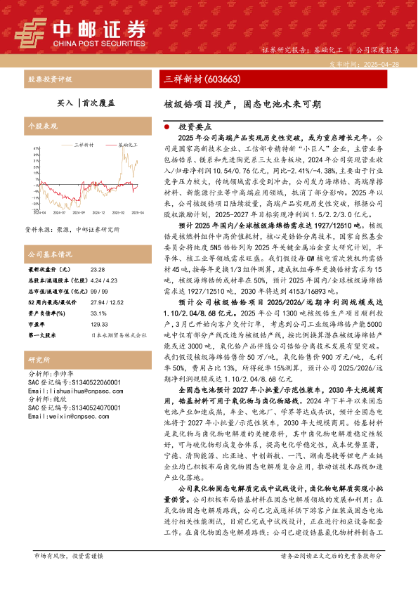 【中邮证券】【20250428】三祥新材核级锆项目投产,固态电池未来可期-32页