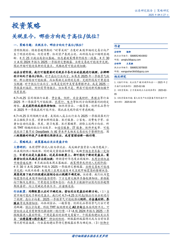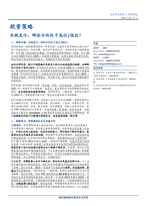 【国盛证券】【20250427】投资策略:关税至今,哪些方向处于高位低位?-15页