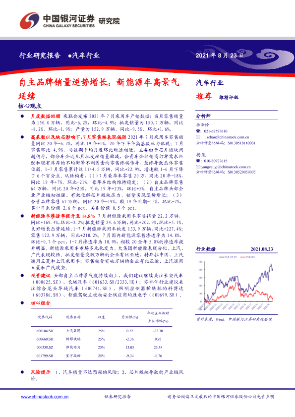 【银河证券】【20210823】汽车行业:自主品牌销量逆势增长,新能源车高景气延续-18页